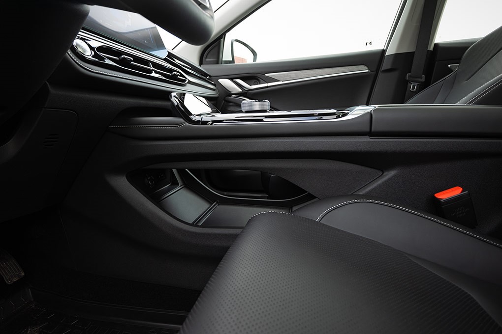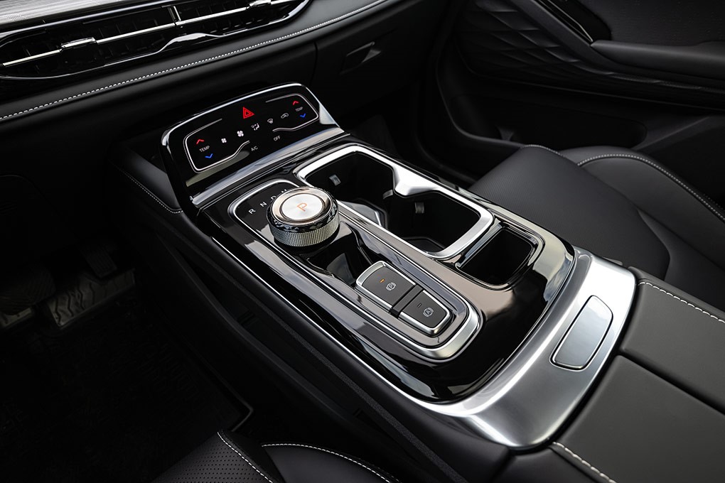 Центральна консоль в JAC JS6 ділиться на два поверхи: вище розташовано дисковий селектор коробки передач, клавіші електронного стоянкового гальма і системи Autohold, блок управління клімат-контролем, бездротова зарядка для смартфона і два підстаканники з утримуючими пелюстками. Нижче – зручний та великий відсік для сумки чи дріб’язку та великий вентильований бокс у підлокітнику, стулки відкриваються як у престижних європейських моделях.